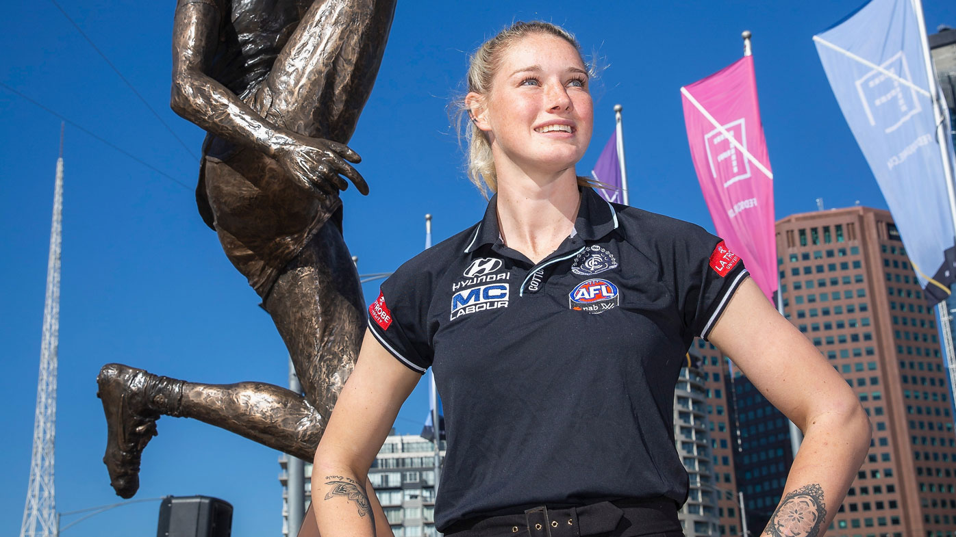 Carlton star forward tayla harris' famous kick has been immortalised in a statue tayla harris. Tayla harris statue sparks heated debate.